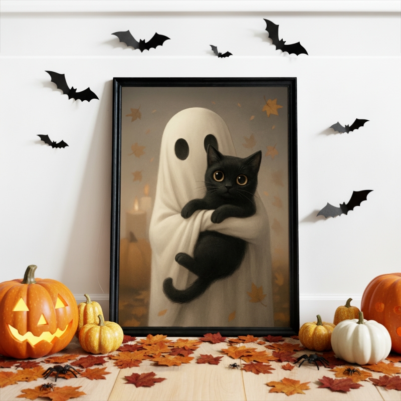 Новий Постер подарунок на Хеловін Привид з чорним котом Збільшити для перегляду