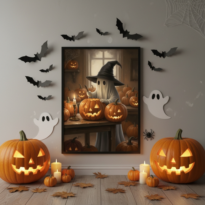 Створи осінню атмосферу вдома з нашою колекцією постерів у стилі Хеловін. Милі привиди, гарбузи, свічки й осіннє листя - усе, що передає настрій теплого вечора з ароматом какао й свіжоспеченого пирога. Ці постери додадуть затишку, легкого містицизму й осінньої магії у будь-який інтер’єр.